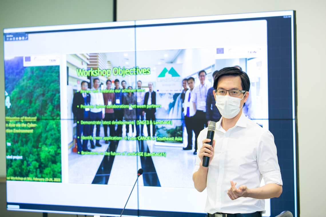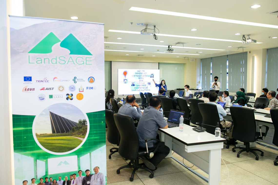 LandSAGE เป็นโครงการวิจัยที่ได้รับทุนสนับสนุนภายใต้โครงการ Asi@Connect และได้รับทุนร่วมสนับสนุนจากสหภาพยุโรป (European Union) โดยมีวัตถุประสงค์เพื่อสร้างสภาพแวดล้อมสำหรับสนับสนุนการทำงานร่วมกันของนักวิจัยในการเฝ้าระวังและบริหารจัดการภัยพิบัติทางธรรมชาติ อันได้แก่ดินถล่ม โคลนถล่ม และอุทกภัย ในภูมิภาคเอเชียตะวันออกเฉียงใต้ โดยผ่านเทคโนโลยี Visualization สำหรับการวิเคราะห์ข้อมูลจำนวนมาก (CyberCANOE) ซึ่งถูกขับเคลื่อนด้วยระบบปฏิบัติการ SAGE3 ซึ่งการประชุมสรุปโครงการ “Final Workshop on LandSAGE4 – Smart Collaborative Decision Support for Monitoring and Mitigation of Natural Disasters (Landslides, Mudflows, and Floods) in Southeastern Asia via the Cyber-enabled Collaboration, Analysis, Navigation, and Observation Environment” ในครั้งนี้ จัดขึ้นเพื่อแลกเปลี่ยนเรียนรู้และทบทวนผลสัมฤทธิ์ของโครงการ แนะนำการติดตั้งระบบ CyberCANOE สาธิตการพัฒนาซอฟต์แวร์ SAGE3 และ LandSAGE ซึ่งเป็นซอฟต์แวร์เวอร์ชันใหม่ล่าสุด ตลอดจนการระดมความคิดและหารือแนวทางการดำเนินโครงการในอนาคตร่วมกัน