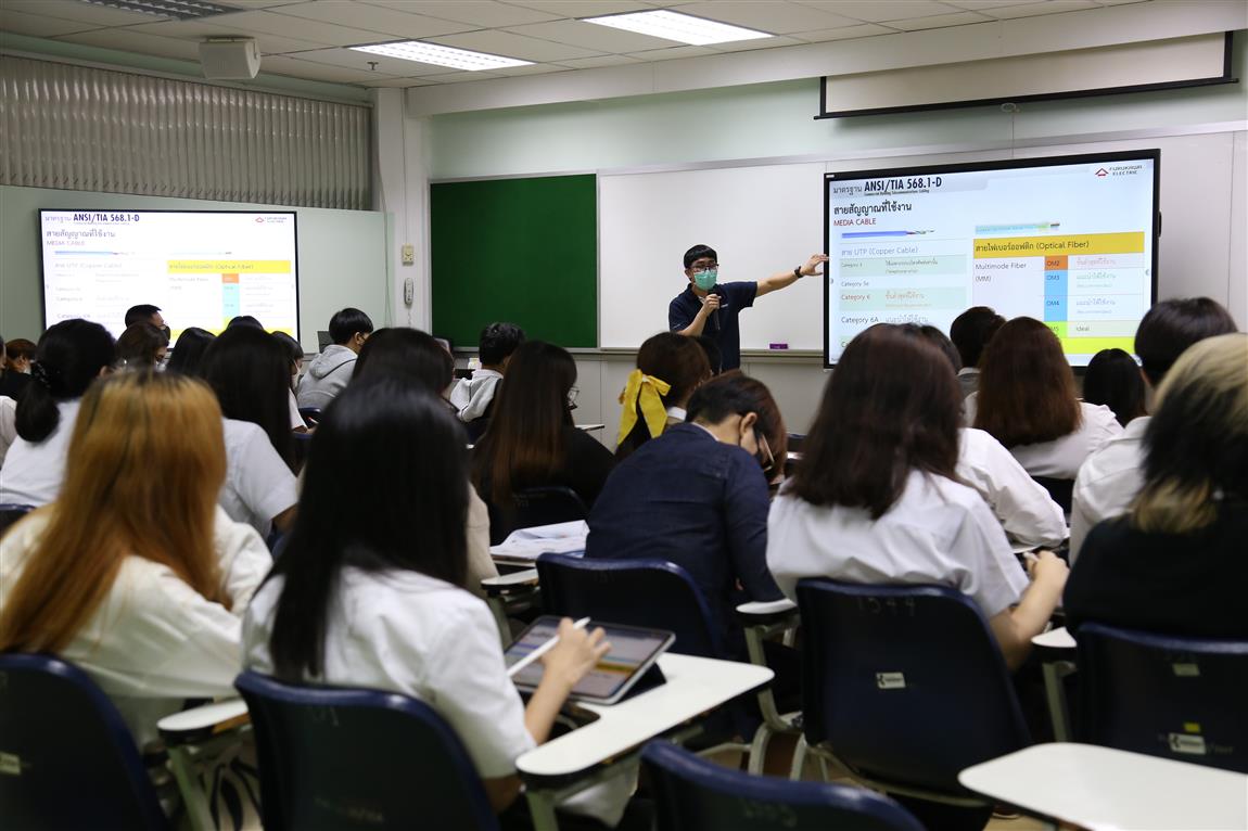 วันที่ 5 กันยายน 2565 คณะเทคโนโลยีสารสนเทศและการสื่อสาร มหาวิทยาลัยมหิดล (ICT Mahidol) นำโดย ผู้ช่วยศาสตราจารย์ ดร. ฐิตินันท์ ตันติธรรม และดร. ทรงพล ตีระกนก อาจารย์ผู้สอนประจำรายวิชา ทสวด 231 ปฏิบัติการระบบเครือข่าย และทสวด 232 ปฏิบัติการระบบเครือข่าย จัดบรรยายพิเศษเรื่อง “Furukawa Cabling System” ให้กับนักศึกษาหลักสูตรวิทยาศาสตรบัณฑิต สาขาวิทยาการและเทคโนโลยีดิจิทัล (DST หลักสูตรไทย) ชั้นปีที่ 2 โดยได้รับเกียรติจาก คุณเอกราช เชยชื่น และคุณชัชนนนญ์ พงศ์กีรติกานต์ Technical & Engineering Support คุณพรเทพ สุวรรณเลิศล้ำ Senior Manager Sales & Marketing Department และคุณวศิน อัศวณิชย์ชากร Sales & Marketing Department จากบริษัท ฟูรูคาวา อิเล็กทริค คอมมิวนิเคชั่นส์ เซ้าท์อีสท์ เอเชีย จำกัด เป็นวิทยากรบรรยายเกี่ยวกับโครงสร้างระบบ Network และมาตรฐานสายสัญญาณ การเลือกใช้สาย UTP การเลือกใช้สาย Fiber Optic ทั้ง Single Mode และ Multi Mode รวมทั้งเวิร์กชอปการติดตั้งสาย UTP และการเชื่อมต่อ Fiber ด้วย Fusion Splice ณ ห้อง IT334 ชั้น 3 และห้อง Lab 106 ชั้น 1 คณะ ICT มหาวิทยาลัยมหิดล ศาลายา