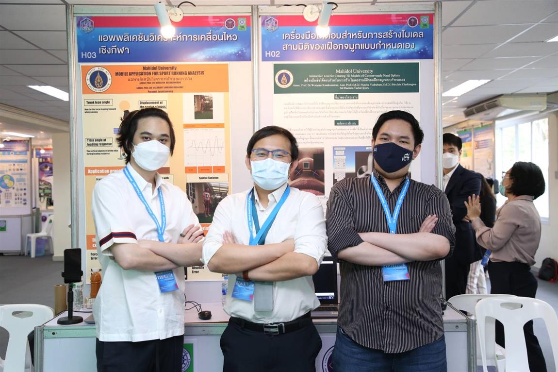 วันที่ 19 – 20 กันยายน 2565 อาจารย์และนักศึกษา คณะเทคโนโลยีสารสนเทศและการสื่อสาร (ICT) มหาวิทยาลัยมหิดล ร่วมนำเสนอผลงานในการประกวด “ผลงานประดิษฐ์คิดค้น” ประจำปี 2566 ซึ่งจัดขึ้นโดยสำนักงานการวิจัยแห่งชาติ (วช.) กระทรวงการอุดมศึกษา วิทยาศาสตร์ วิจัยและนวัตกรรม (อว.) ณ สำนักงานการวิจัยแห่งชาติ (วช.) กรุงเทพมหานคร โดยมีผลงานที่เข้าร่วมนำเสนอ ดังนี้
