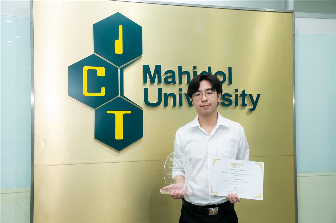 คณะเทคโนโลยีสารสนเทศและการสื่อสาร มหาวิทยาลัยมหิดล (ICT Mahidol) ขอแสดงความยินดีกับ นายนนท์ สมบูรณ์ศักดิกุล นักศึกษาชั้นปี 4 สาขาวิศวกรรมซอฟต์แวร์ หลักสูตรเทคโนโลยีสารสนเทศและการสื่อสาร (ICT หลักสูตรนานาชาติ) ในโอกาสที่ได้รับรางวัล “นักศึกษาสาขาวิชาเทคโนโลยีสารสนเทศที่มีคุณธรรมและจริยธรรมดีเด่น” ประจำปีการศึกษา 2564 จากสภาคณบดีคณะเทคโนโลยีสารสนเทศแห่งประเทศไทย เมื่อวันที่ 10 ตุลาคม 2565