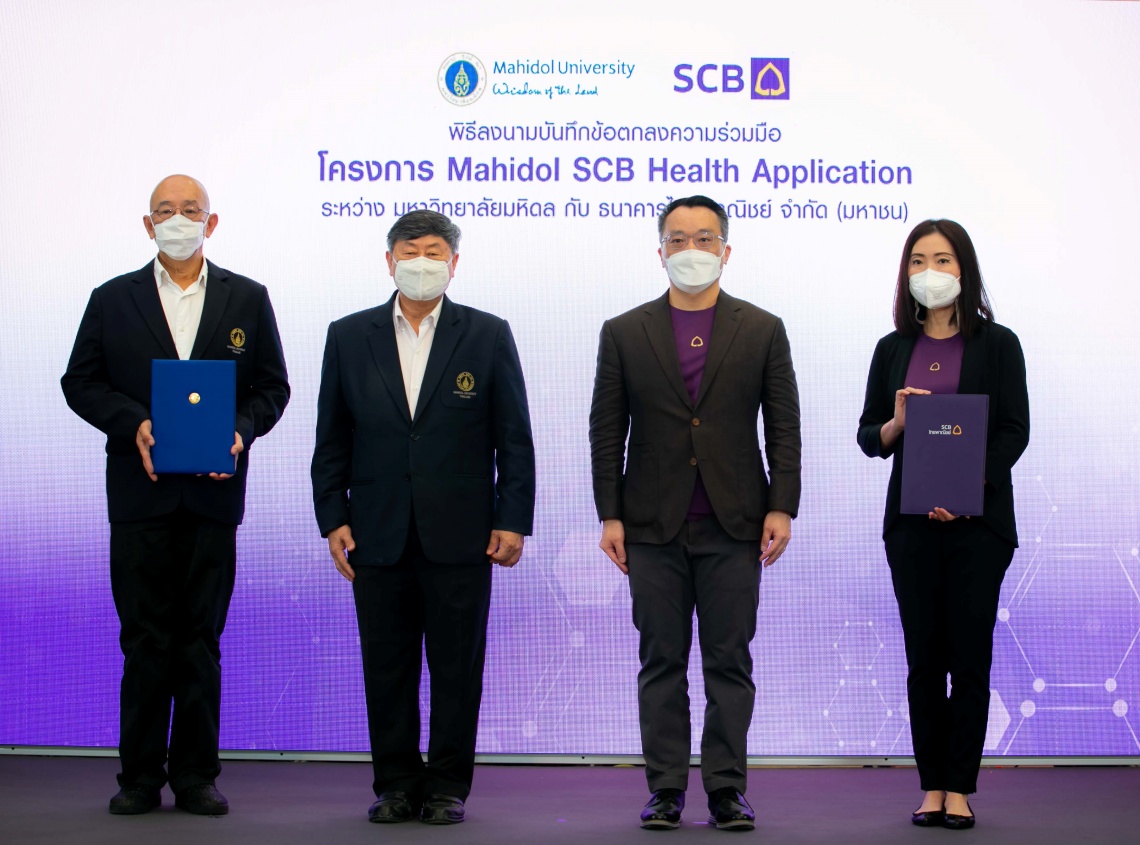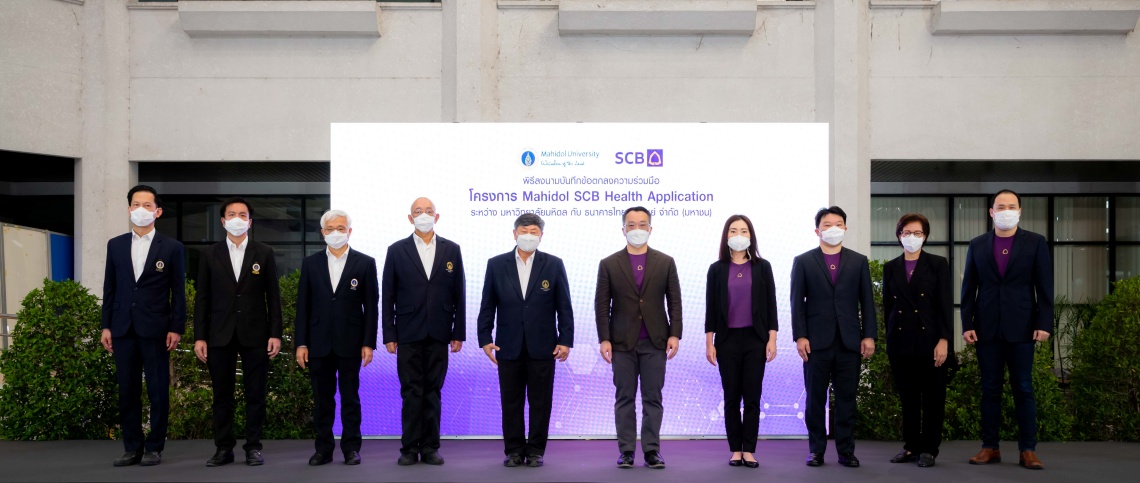 วันที่ 13 มกราคม 2565 ดร. พัฒนศักดิ์ มงคลวัฒน์ คณบดีคณะเทคโนโลยีสารสนเทศและการสื่อสาร (ICT) มหาวิทยาลัยมหิดล เข้าร่วมเป็นเกียรติและสักขีพยานในพิธีลงนามความร่วมมือในการพัฒนาแพลตฟอร์มสุขภาพ ในโครงการ “Mahidol SCB Health Application” ระหว่างมหาวิทยาลัยมหิดล และธนาคารไทยพาณิชย์ จำกัด (มหาชน) โดยในลำดับแรกของพิธีลงนามความร่วมมือฯ ได้รับเกียรติจาก ศาสตราจารย์ นายแพทย์บรรจง มไหสวริยะ อธิการบดีมหาวิทยาลัยมหิดล กล่าวถึงความร่วมมือในการสนับสนุนข้อมูลด้านวิชาการของมหาวิทยาลัยมหิดล และคุณชาลี อัศวธีระธรรม รองผู้จัดการใหญ่อาวุโส ประธานเจ้าหน้าที่บริหารกลุ่มงาน Digital Banking ธนาคารไทยพาณิชย์ กล่าวถึงความร่วมมือระหว่างธนาคารไทยพาณิชย์ กับ มหาวิทยาลัยมหิดล จากนั้นเป็นพิธีลงนามความร่วมมือโดย ศาสตราจารย์ นายแพทย์บรรจง มไหสวริยะ พร้อมด้วยคุณชาลี อัศวธีระธรรม รองศาสตราจารย์ นายแพทย์สรายุทธ สุภาพรรณชาติ ผู้ช่วยอธิการบดีฝ่ายบริหารสินทรัพย์ มหาวิทยาลัยมหิดล และคุณปรินทร์ ตระกูลฮุน Lead, Health Platform Digital Platforms and Products Function ธนาคารไทยพาณิชย์ ร่วมเป็นสักขีพยาน และในลำดับสุดท้ายเป็นการถ่ายภาพที่ระลึกร่วมกัน ณ Innovative Space คณะเทคโนโลยีสารสนเทศและการสื่อสาร มหาวิทยาลัยมหิดล ศาลายา