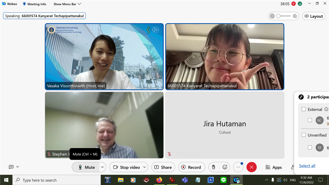 วันที่ 4 พฤศจิกายน 2565 คณะเทคโนโลยีสารสนเทศและการสื่อสาร (ICT) มหาวิทยาลัยมหิดล จัดสอบสัมภาษณ์คัดเลือกเข้าศึกษาต่อในระดับปริญญาตรี หลักสูตรวิทยาศาสตรบัณฑิต สาขาวิชาเทคโนโลยีสารสนเทศและการสื่อสาร (ICT หลักสูตรนานาชาติ) และหลักสูตรวิทยาศาสตรบัณฑิต สาขาวิชาวิทยาการและเทคโนโลยีดิจิทัล (DST หลักสูตรไทย) รอบ MU Portfolio (TCAS1) 1/1 ประจำปีการศึกษา 2566 โดยมีนักเรียนเข้าสอบสัมภาษณ์ในรูปแบบออนไลน์ผ่านโปรแกรม Webex Meetings กว่า 150 คน ซึ่งการสัมภาษณ์ครั้งนี้ จะประกาศผลในวันที่ 10 พฤศจิกายน 2565 ผ่านเว็บไซต์ https://tcas.mahidol.ac.th/