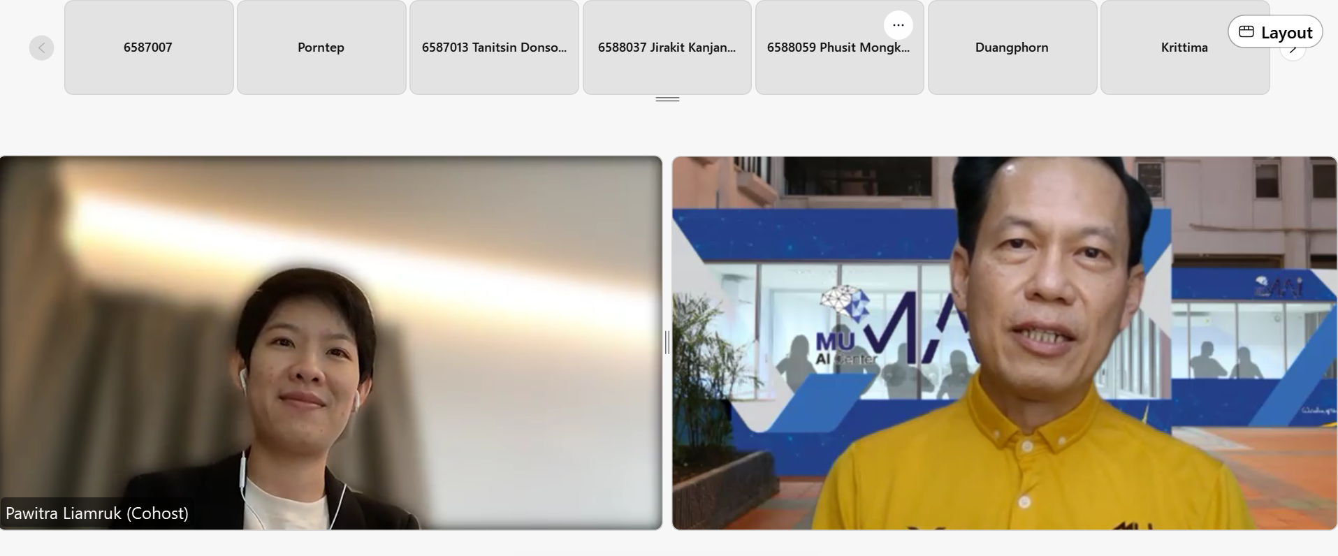 หลังเสร็จสิ้นกิจกรรมดังกล่าว คณะ ICT ยังได้เข้าร่วมกิจกรรมพิเศษ “Online Breakout Room” โดยมี ดร.พัฒนศักดิ์ มงคลวัฒน์ คณบดี และดร.ปวิตรา เลี่ยมรักษ์ ร่วมพบปะ พูดคุย และตอบข้อซักถามต่างๆ แก่ผู้ปกครองนักศึกษาหลักสูตรวิทยาศาสตรบัณฑิต สาขาวิชาเทคโนโลยีสารสนเทศและการสื่อสาร (ICT นานาชาติ) และหลักสูตรวิทยาศาสตรบัณฑิต สาขาวิชาวิทยาการและเทคโนโลยีดิจิทัล (DST หลักสูตรไทย) อีกด้วย โดยกิจกรรมพิเศษนี้ มีส่วนงานต่างๆ เข้าร่วมในรูปแบบออนไลน์ผ่านระบบ Cisco Webex จำนวน 7 ส่วนงาน ได้แก่ คณะเทคโนโลยีสารสนเทศและการสื่อสาร (ICT) คณะเทคนิคการแพทย์ คณะวิทยาศาสตร์ คณะสังคมศาสตร์และมนุษยศาสตร์ คณะศิลปศาสตร์ วิทยาเขตกาญจนบุรี และโครงการจัดตั้งวิทยาเขตอำนาจเจริญ