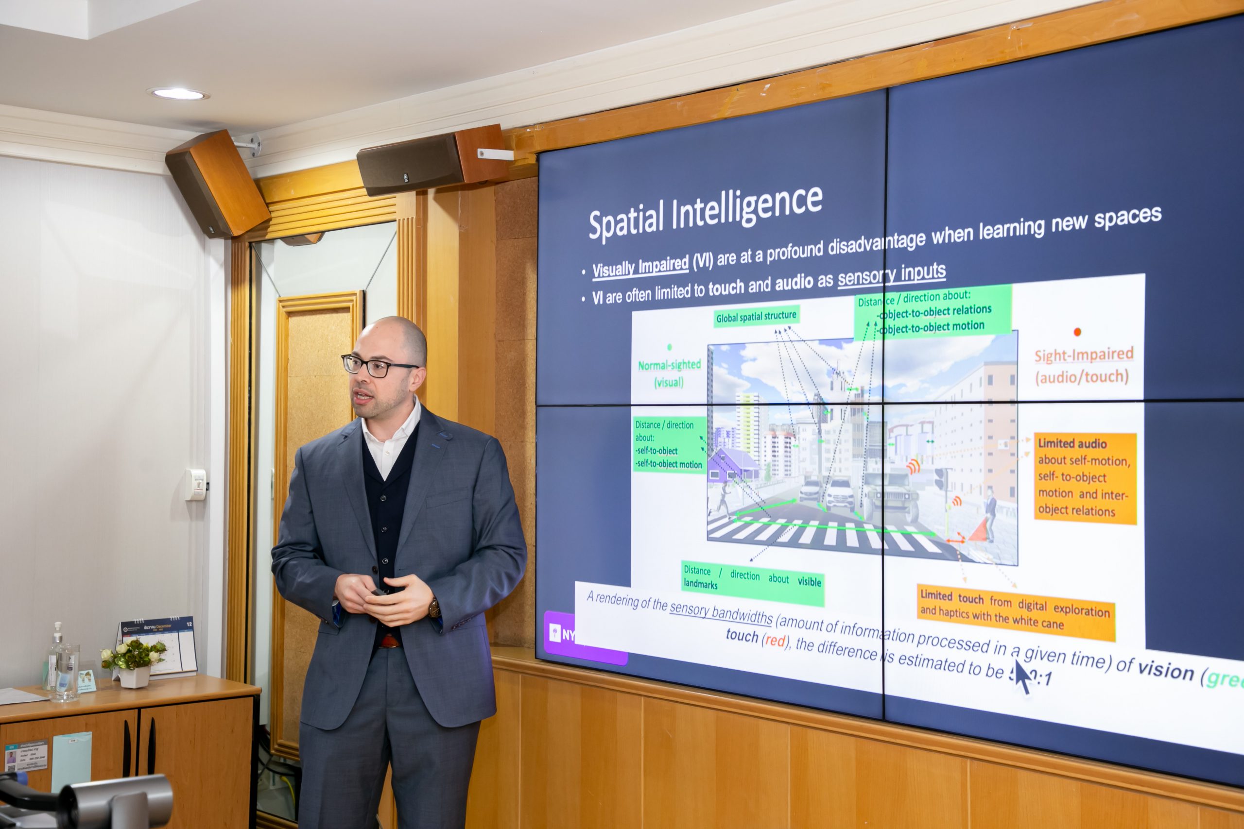หลังการเข้าพบอธิการบดี และคณะผู้บริหารจากมหาวิทยาลัยมหิดลแล้ว Assoc. Prof. John Ross Rizzo พร้อมด้วย Mr. Anbang Yang ได้ร่วมทดสอบและอบรมการใช้งานระบบ “VIS4ION-Thailand: Visually Impaired Smart Service System for Spatial Intelligence and Onboard Navigation” ให้แก่คณาจารย์ และบุคลากรที่เกี่ยวข้อง ณ วิทยาลัยราชสุดา มหาวิทยาลัยมหิดล รวมทั้งได้เข้าเยี่ยมชมสถาบันปัญญาประดิษฐ์มหิดล (MU AI Center) และหารือความร่วมมือด้านงานวิจัย ร่วมกับ ดร.พัฒนศักดิ์ มงคลวัฒน์ คณบดีคณะ ICT ผศ. ดร. ฐิตินันท์ ตันติธรรม และอาจารย์ณัฐชาต ธัมกิตติคุณ อาจารย์ประจำคณะ ICT เกี่ยวกับหัวข้องานวิจัยในระดับปริญญาเอก อีกทั้งยังได้แลกเปลี่ยนเรียนรู้ผลงานวิจัยที่เกี่ยวข้อง ร่วมกับ อาจารย์ แพทย์หญิง วัชรา ริ้วไพบูลย์ วิทยาลัยราชสุดา มหาวิทยาลัยมหิดล ณ ห้อง AI 1 คณะ ICT มหาวิทยาลัยมหิดล ศาลายา อีกด้วย
