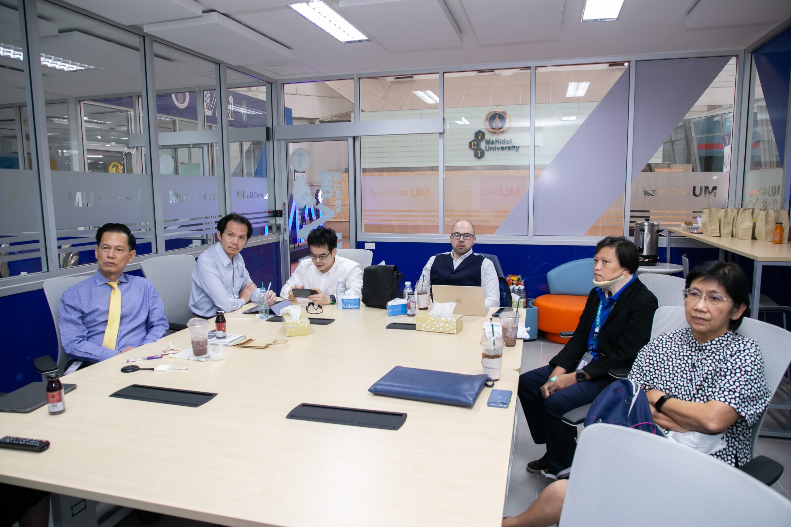 วันที่ 14 ธันวาคม 2565 ดร.พัฒนศักดิ์ มงคลวัฒน์ คณบดีคณะเทคโนโลยีสารสนเทศและการสื่อสาร มหาวิทยาลัยมหิดล (ICT Mahidol) พร้อมด้วย อาจารย์ แพทย์หญิง วัชรา ริ้วไพบูลย์ วิทยาลัยราชสุดา มหาวิทยาลัยมหิดล ให้การต้อนรับ Assoc. Prof. John Ross Rizzo, Associate Professor, Department of Neurology และ Mr. Anbang Yang, Ph.D. candidate จาก New York University ประเทศสหรัฐอเมริกา ในโอกาสเข้าเยี่ยมเยียน และหารือความร่วมมือเกี่ยวกับงานวิจัย โดยมี ศาสตราจารย์ นายแพทย์บรรจง มไหสวริยะ อธิการบดีมหาวิทยาลัยมหิดล พร้อมด้วยคณะผู้บริหารมหาวิทยาลัยมหิดล และผู้บริหารจากส่วนงานต่าง ๆ ร่วมให้การต้อนรับ และรับชมการสาธิตอุปกรณ์ที่ควบคุมด้วยระบบคอมพิวเตอร์ (Wearable Devices) ณ สำนักงานอธิการบดี มหาวิทยาลัยมหิดล ศาลายา