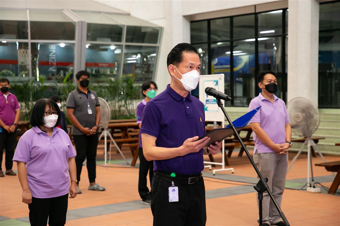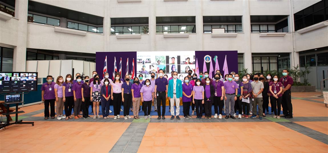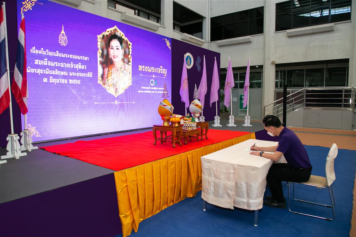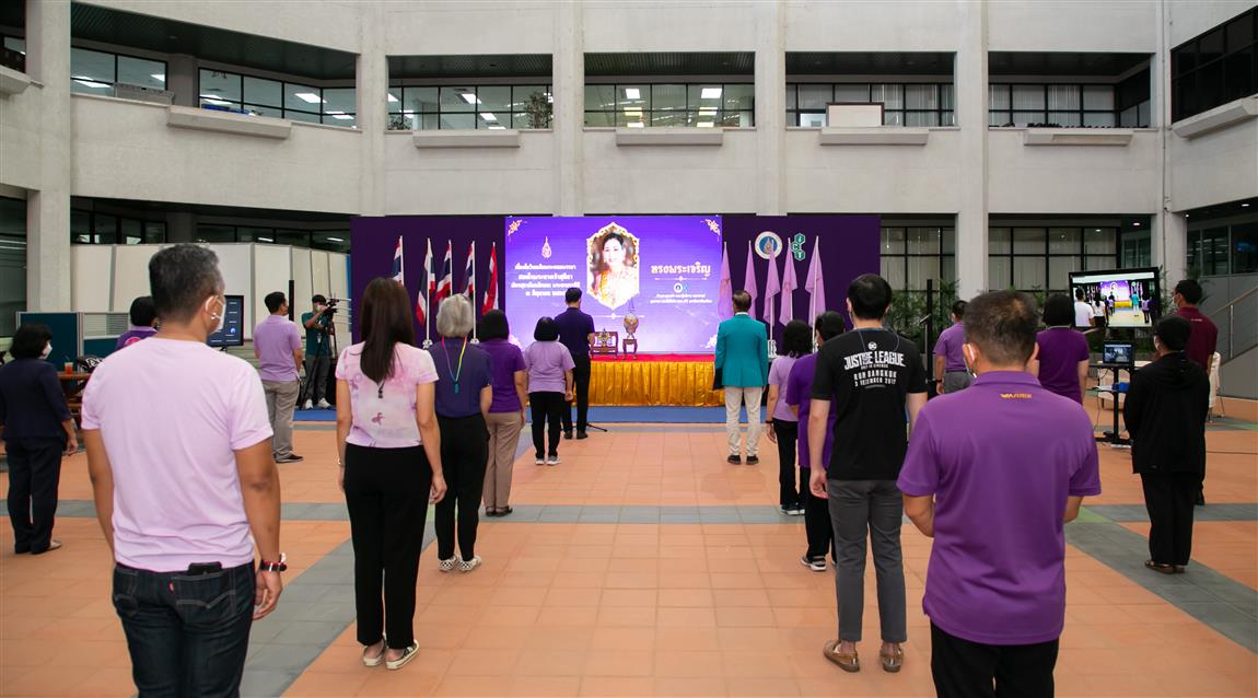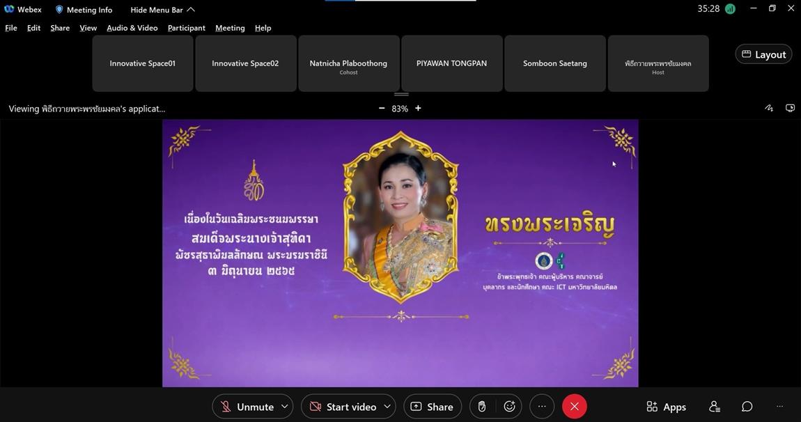 วันที่ 2 มิถุนายน 2565 คณะเทคโนโลยีสารสนเทศและการสื่อสาร (ICT) ม.มหิดล จัดงาน“พิธีถวายพระพรชัยมงคล สมเด็จพระนางเจ้าสุทิดา พัชรสุธาพิมลลักษณ พระบรมราชินี เนื่องในโอกาสวันเฉลิมพระชนมพรรษา 44 พรรษา” โดยได้รับเกียรติจาก ดร. พัฒนศักดิ์ มงคลวัฒน์ คณบดี เป็นประธานในพิธีฯ พร้อมด้วย คณะผู้บริหาร คณาจารย์ และบุคลากร พร้อมใจกันแต่งกายในโทนสีม่วง เข้าร่วมพิธีถวายพระพรชัยมงคล โดยมี คุณคณิตพัฒน์ ศรีนันทกุล หัวหน้าสำนักงานคณบดี เป็นผู้กล่าวรายงาน จากนั้นประธานในพิธีฯ เปิดกรวยกระทงดอกไม้ ถวายสักการะ ถวายความเคารพพระฉายาลักษณ์ กล่าวราชสดุดีเฉลิมพระเกียรติ และร้องเพลงสรรเสริญพระบารมีร่วมกัน ณ บริเวณลาน Innovative Space คณะ ICT ม.มหิดล ศาลายา และในรูปแบบออนไลน์ผ่านโปรแกรม Webex Meetings