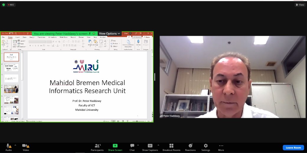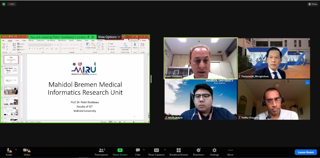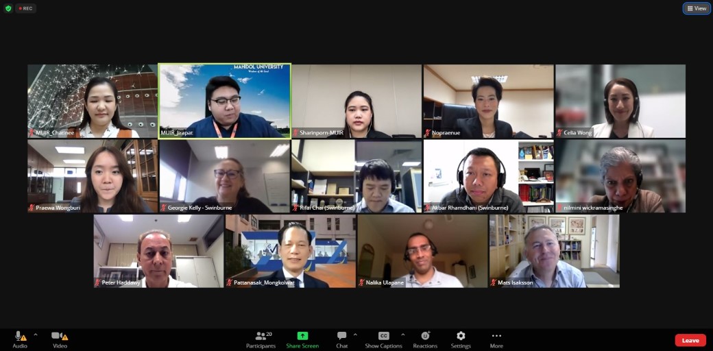 วันที่ 2 มีนาคม 2566 ดร.พัฒนศักดิ์ มงคลวัฒน์ คณบดี คณะเทคโนโลยีสารสนเทศและการสื่อสาร มหาวิทยาลัยมหิดล (ICT Mahidol) พร้อมด้วย Prof. Dr. Peter Haddawy รองคณบดีฝ่ายวิจัย เข้าร่วมประชุม Swinburne – Mahidol Research Matchmaking Session โดยได้รับเกียรติจาก รองศาสตราจารย์ ดร.นภเรณู สัจจรักษ์ ธีระฐิติ รองอธิการบดีฝ่ายวิเทศสัมพันธ์และสื่อสารองค์กร มหาวิทยาลัยมหิดล และ Prof. Georgina Kelly, Dean, Graduate Research, Swinburne University of Technology เครือรัฐออสเตรเลีย เป็นประธานกล่าวเปิดการประชุม โดยมี รองศาสตราจารย์ ดร.ธนภัทร์ วานิชานนท์ รองคณบดีฝ่ายการจัดการทุนมนุษย์และองค์กรสัมพันธ์ คณะวิศวกรรมศาสตร์คณะวิศวกรรมศาสตร์ พร้อมด้วยคณาจารย์จากคณะวิศวกรรมศาสตร์ และคณะสิ่งแวดล้อมและทรัพยากรศาสตร์ เข้าร่วมแลกเปลี่ยนเรียนรู้ และหารือแนวทางความร่วมมือด้านการวิจัยร่วมกันในอนาคต ในรูปแบบออนไลน์ ผ่านโปรแกรม Zoom