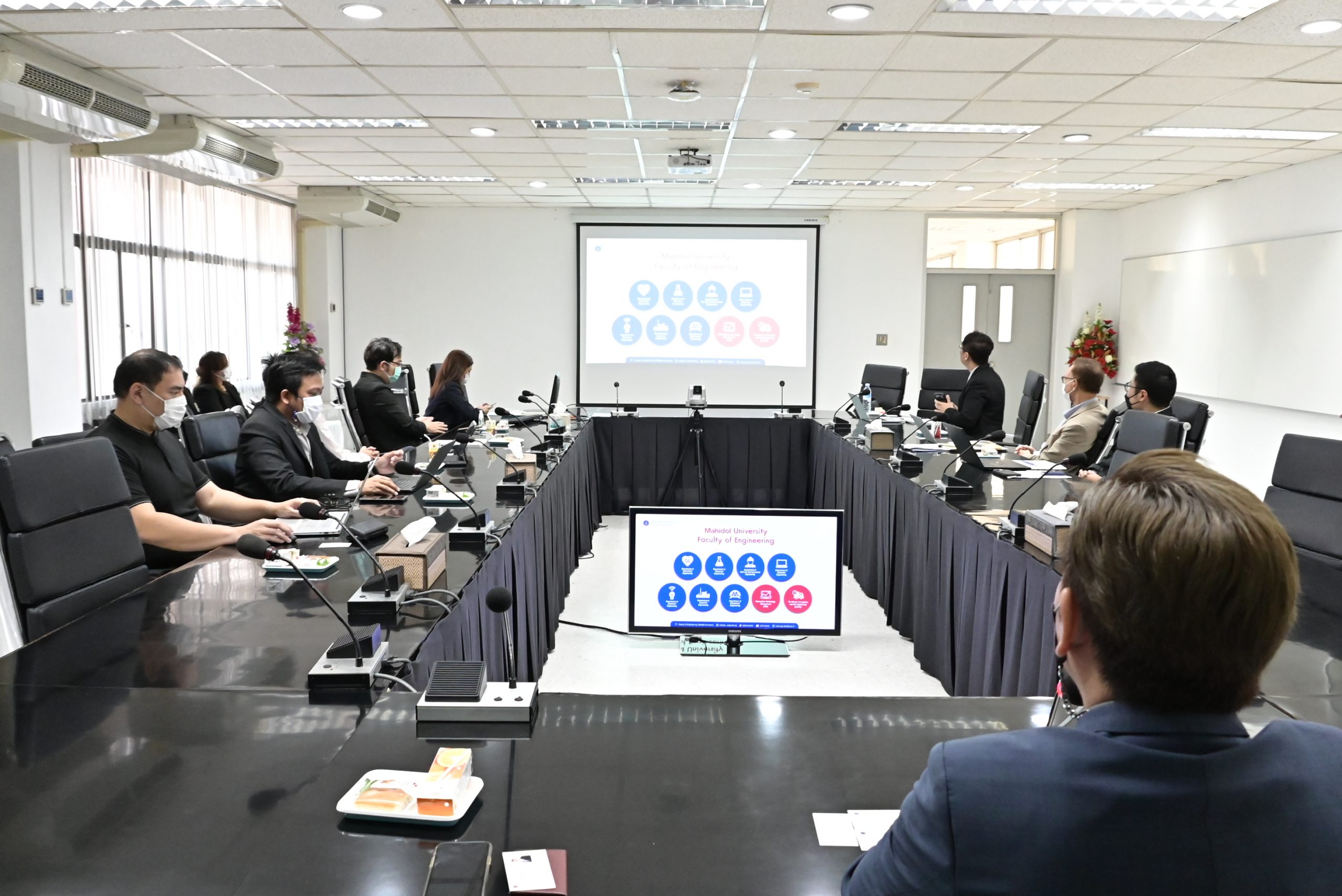 วันที่ 7 กุมภาพันธ์ 2566 คณะเทคโนโลยีสารสนเทศและการสื่อสาร มหาวิทยาลัยมหิดล (ICT Mahidol) นำโดย Professor Dr. Peter Fereed Haddawy รองคณบดีฝ่ายวิจัย ผู้แทนคณบดี พร้อมด้วย รองศาสตราจารย์ ดร.ศุภวงศ์ ทั่วรอบ อาจารย์ประจำกลุ่มวิชาวิทยาการคอมพิวเตอร์ เข้าประชุมหารือความร่วมมือในด้าน Engineering Product Development, Information Systems Technology and Design และ Engineering Systems and Design กับ Professor Soh Gim Song, Associate Professor and Director of Education จาก Singapore University of Technology and Design โดยมี รองศาสตราจารย์ ดร.ธนภัทร์ วานิชานนท์ รองคณบดีฝ่ายการจัดการทุนมนุษย์และองค์กรสัมพันธ์ คณะวิศวกรรมศาสตร์ มหาวิทยาลัยมหิดล พร้อมด้วยคณาจารย์จากภาควิชาต่างๆ ให้การต้อนรับอาคันตุกะ และเข้าร่วมประชุมหารือความร่วมมือด้านวิชาการดังกล่าว ณ ห้องประชุม 201 คณะวิศวกรรมศาสตร์ มหาวิทยาลัยมหิดล ศาลายา